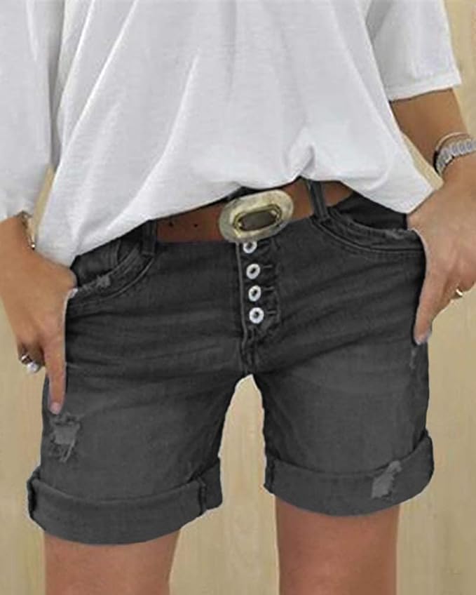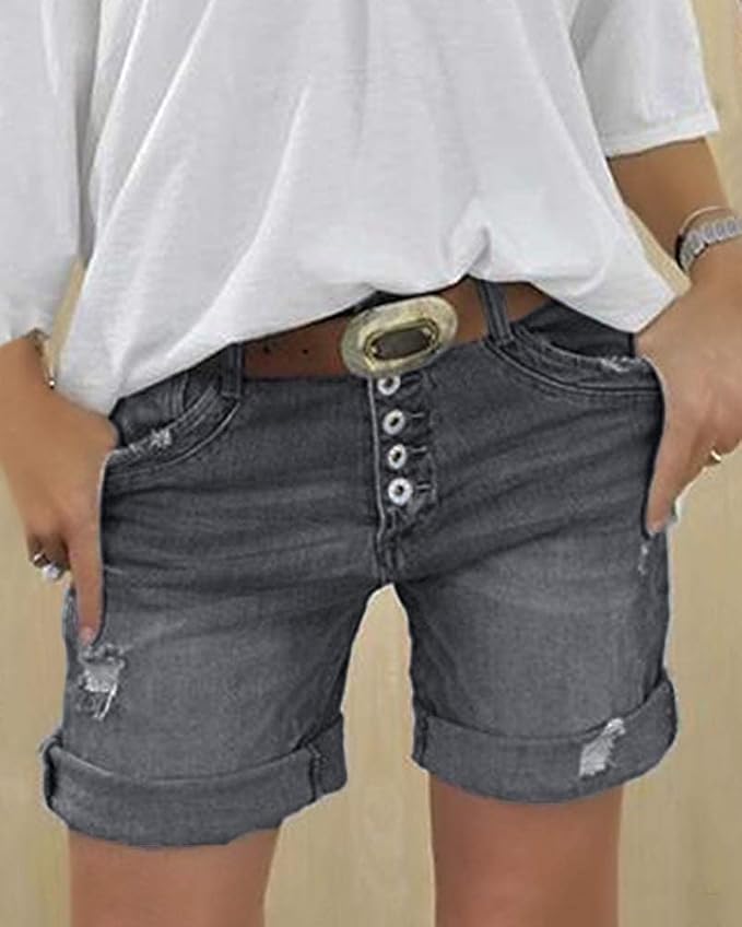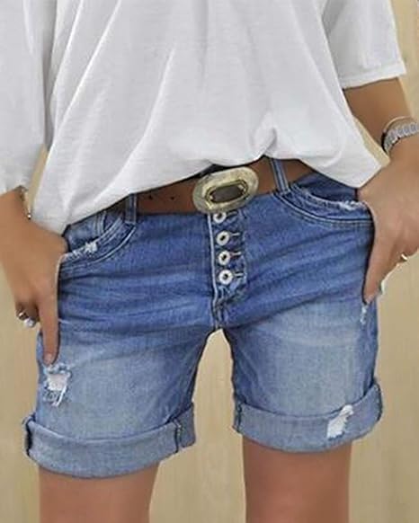Diese zerrissenen Jeansshorts für Damen bieten eine perfekte Mischung aus Komfort und Stil und sind somit ein Must-have für Ihre Garderobe. Sie sind aus hochwertiger Baumwolle und einem Hauch Elasthan gefertigt und bieten eine schmeichelhafte Passform mit genau der richtigen Menge an Stretch für ganztägigen Komfort. Die zerrissenen Distressed-Details auf der Vorderseite sorgen für eine trendige, kantige Ausstrahlung, die perfekt für Freizeitausflüge, Strandtage oder sogar Abendveranstaltungen ist.