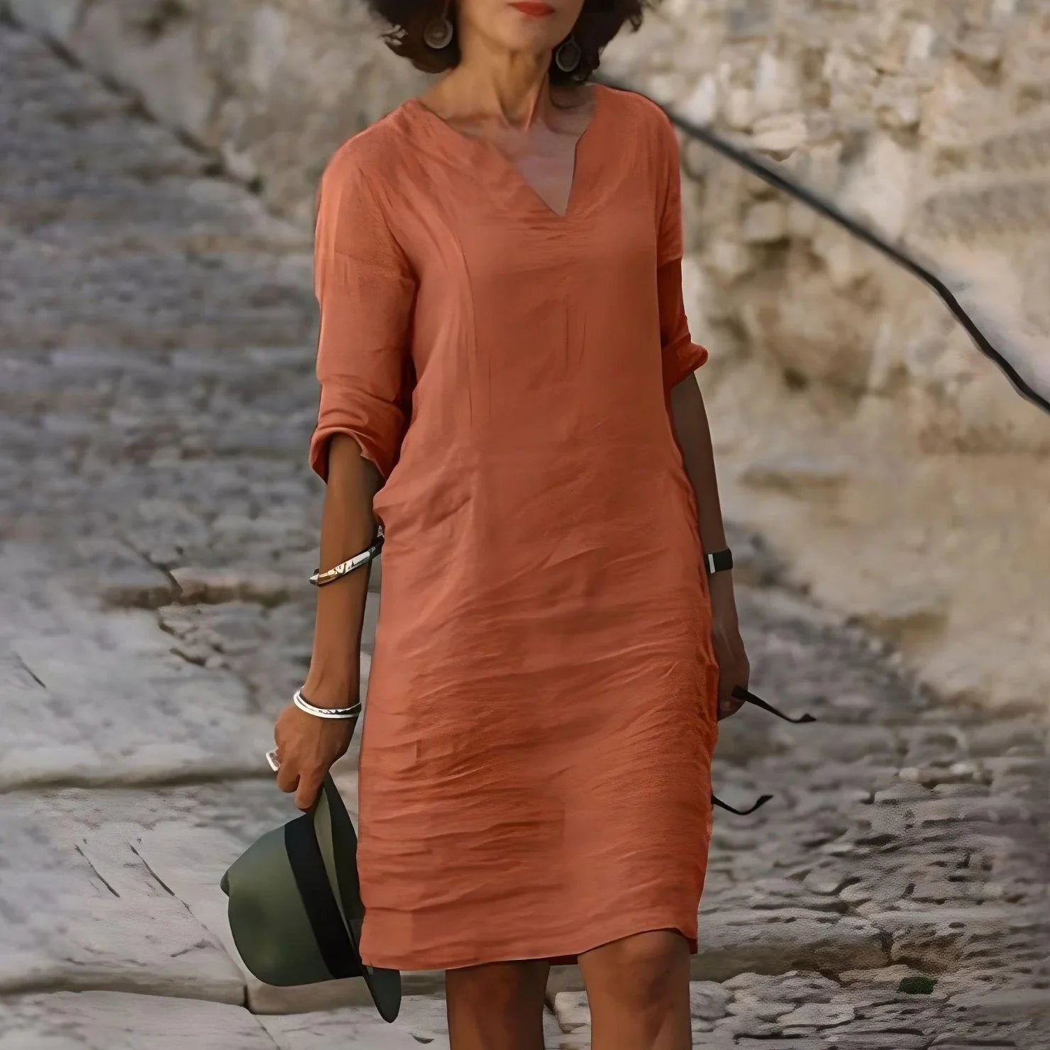 Dieses elegante Kleid für Damen ist die perfekte Balance aus zeitlosem Stil und moderner Eleganz. Es hat eine schmeichelhafte Silhouette und eine wunderschön maßgeschneiderte Passform, die Ihre natürlichen Kurven betont und gleichzeitig für einen bequemen und anmutigen Look sorgt. Der hochwertige Stoff bietet ein luxuriöses Gefühl, während die klassischen Details wie dezente Falten, eine ausgeprägte Taille und ein eleganter Ausschnitt es sowohl für formelle als auch für halbformelle Anlässe geeignet machen.